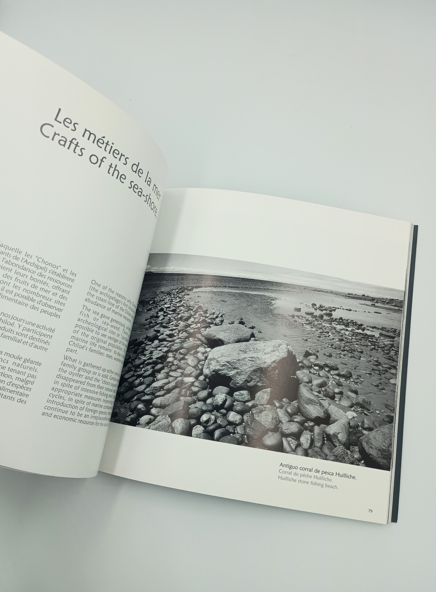 Libro de fotografías, blanco y negro, a través de cuyas imágenes y textos se exponen y describen oficios tradicionales del archipiélago de Chiloé, tales como la producción de carbón vegetal, el trabajo en piedra Cancahua de la península de Lacuy, la cerámica de Caulín, el telar Quelgo, el universo mecánico de la madera, las mingas solidarias y otras actividades y tecnologías productivas tradicionales que han dado singulares características a la cultura chilota.